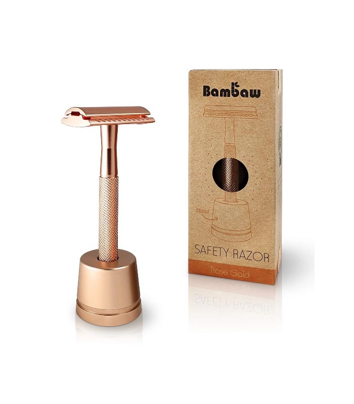 Bambaw, wielorazowa maszynka do golenia, stojak, ZŁOTY RÓŻ