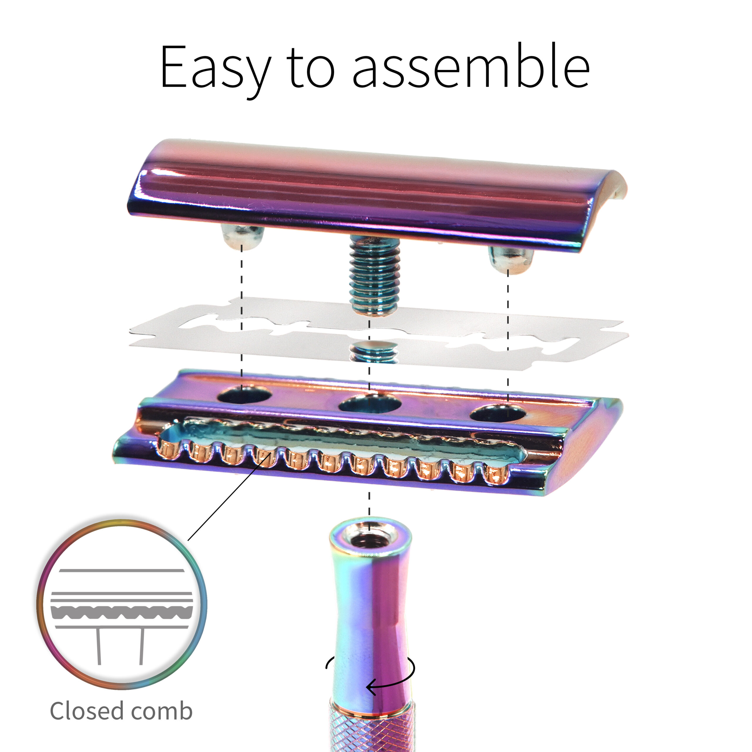 Bambaw, wielorazowa maszynka do golenia, TĘCZOWA