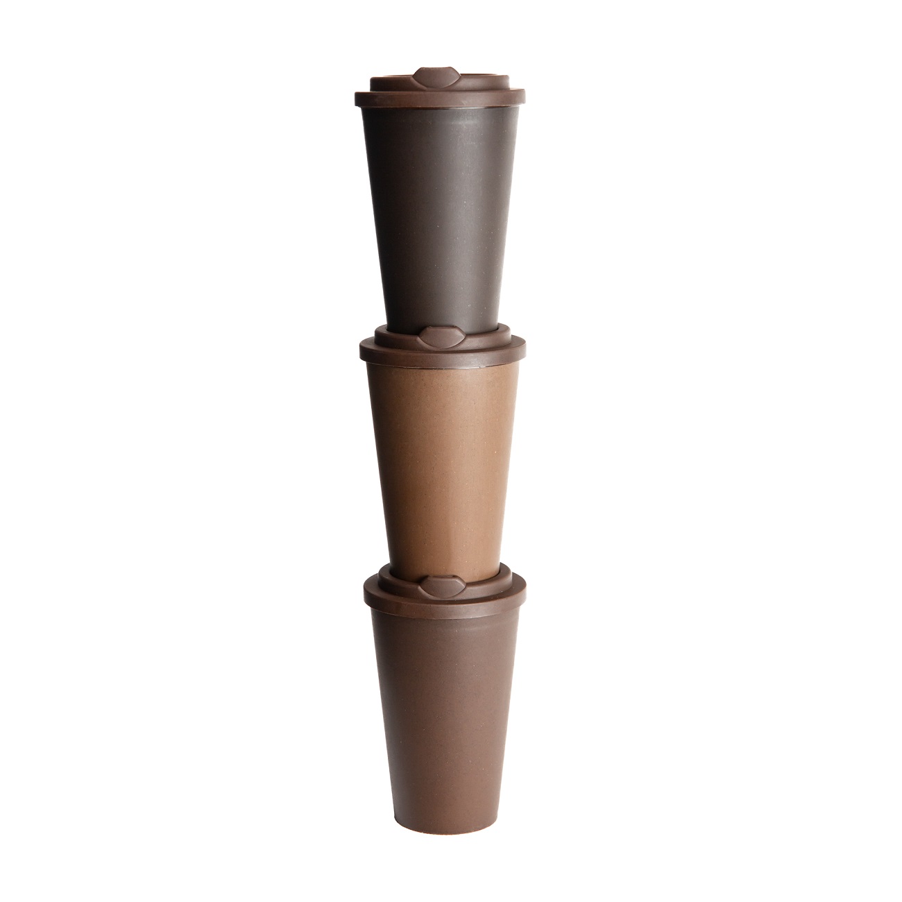 Opracowaliśmy kubki, które są wykonane z fusów z kawy, pochodzących z recyklingu oraz mieszanki materiałów pochodzenia roślinnego. To połączenie ma sens i wiele fantastycznych zalet. Jeden kubek termiczny bioffee zawiera fusy z około 3 standardowych filiżanek do espresso. Fusy pozyskujemy z kawiarni, firm, stacji, oraz od lokalnej społeczności i przyjaciół, którzy wspierają naszą misję.