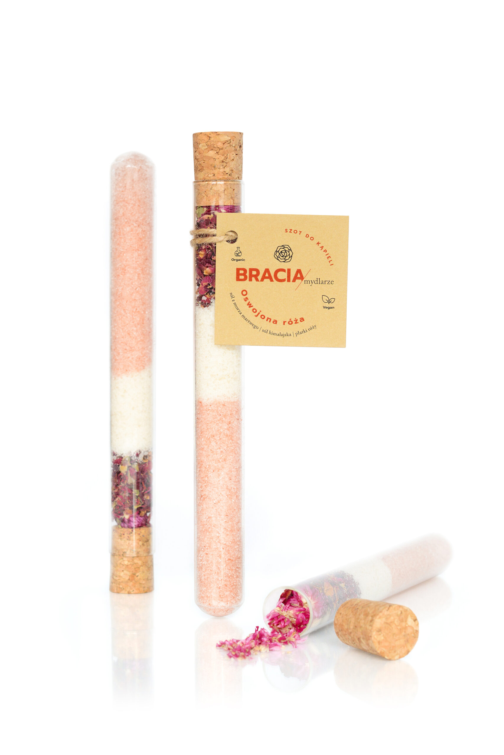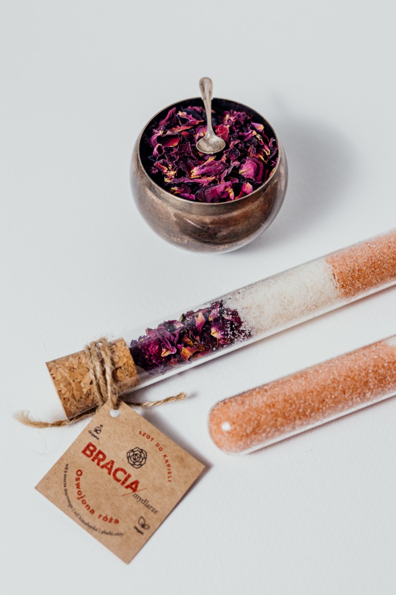 Sól himalajska drobnoziarnista, sól z morza martwego, gomfrena kulista, płatki róży, esencja zapachowa
