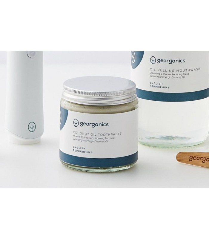 Georganics naturalna pasta do zębów angielska mięta do mycia jamy ustnej z olejkiem eterycznym z mięty pieprzowej. Odświeża i przywraca równowagę pH w jamie ustnej. Mineralna pasta do zębów doskonale czyści zęby działa bakteriobójczo, zawiera w swoim składzie najbardziej skuteczne składniki, które jednocześnie są w pełni naturalne. Nie zawiera fluorków, nie ustępując czyszczącemu szkliwo i wybielającemu działaniu komercyjnych past.