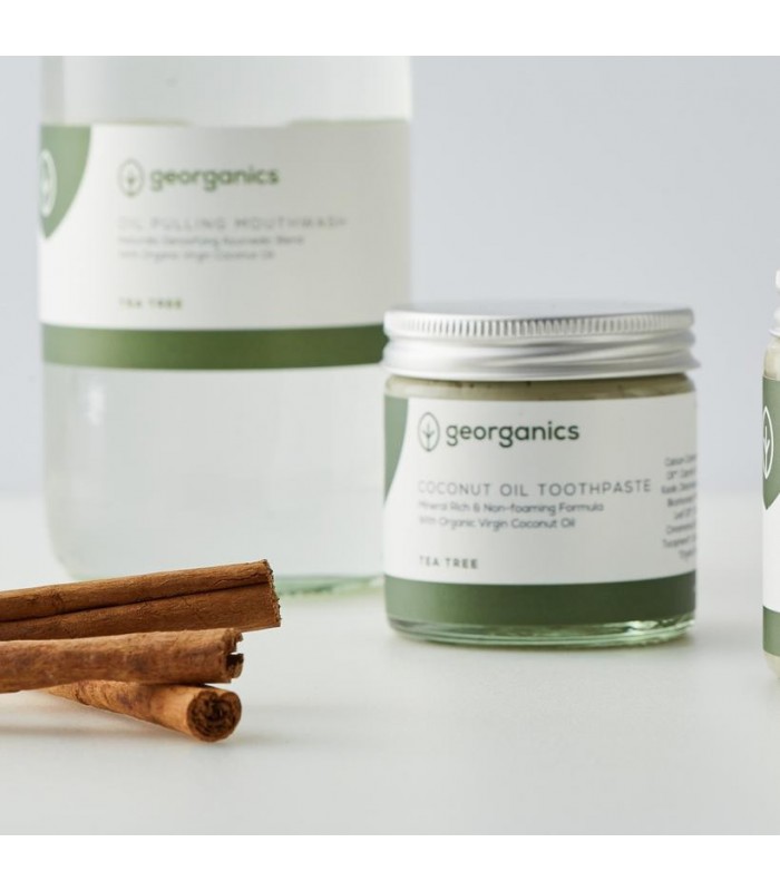 Georganics naturalna pasta do zębów drzewo herbaciane odświeża oddech, doskonale czyści zęby, przywraca równowagę pH w ustach oraz działa leczniczo na podrażnione dziąsła, błony śluzowe i drobne rany. Georganics naturalna pasta do zębów drzewo herbaciane nie zawiera w swoim składzie fluorków i sztucznych, drażniących składników, mimo to może konkurować swoją skutecznością z komercyjnymi pastami wybielającymi dostępnymi w drogeriach.