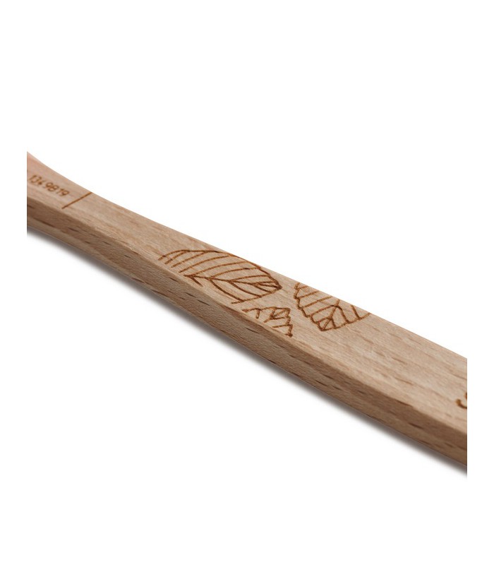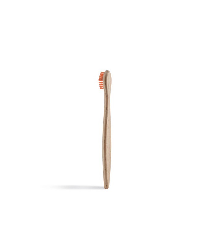 Kompostowalna szczoteczka do zębów dla dzieci z drzewa bukowego. Rękojeść wykonana z drewna bukowego z certyfikatem FSC. Z powodzeniem może być kompostowana w domu. Rękojeść tej szczoteczki jest specjalnie wyprofilowana do małym dłoni dziecięcych. W miejsce każdego drzewa ściętego do produkcji szczoteczki, firma sadzi nowe drzewo. Pozostałość materiału używana jest do ogrzewania fabryki.