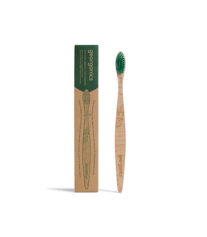 Szczoteczka do zębów z drzewa bukowego, kompostowalna, WŁOSIE ŚREDNIE, ZIELONE, Georganics.