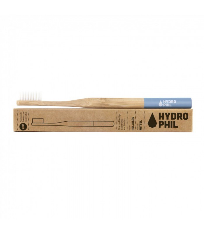 Hydrophil, naturalna, wegańska szczoteczka do zębów z biodegradowalnego bambusa, WŁOSIE ŚREDNIE, NIEBIESKA