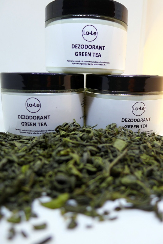 La Le dezodorant Green Tea o zapachu zielonej herbaty na bazie sody oczyszczonej i oleju kokosowego. Przeznaczony do codziennego stosowania jako alternatywa dla dezodorantów zapychających oraz blokujących pracę gruczołów łojowych. Zapobiega powstawaniu przykrego zapachu, odświeża i pozwala skórze oddychać.