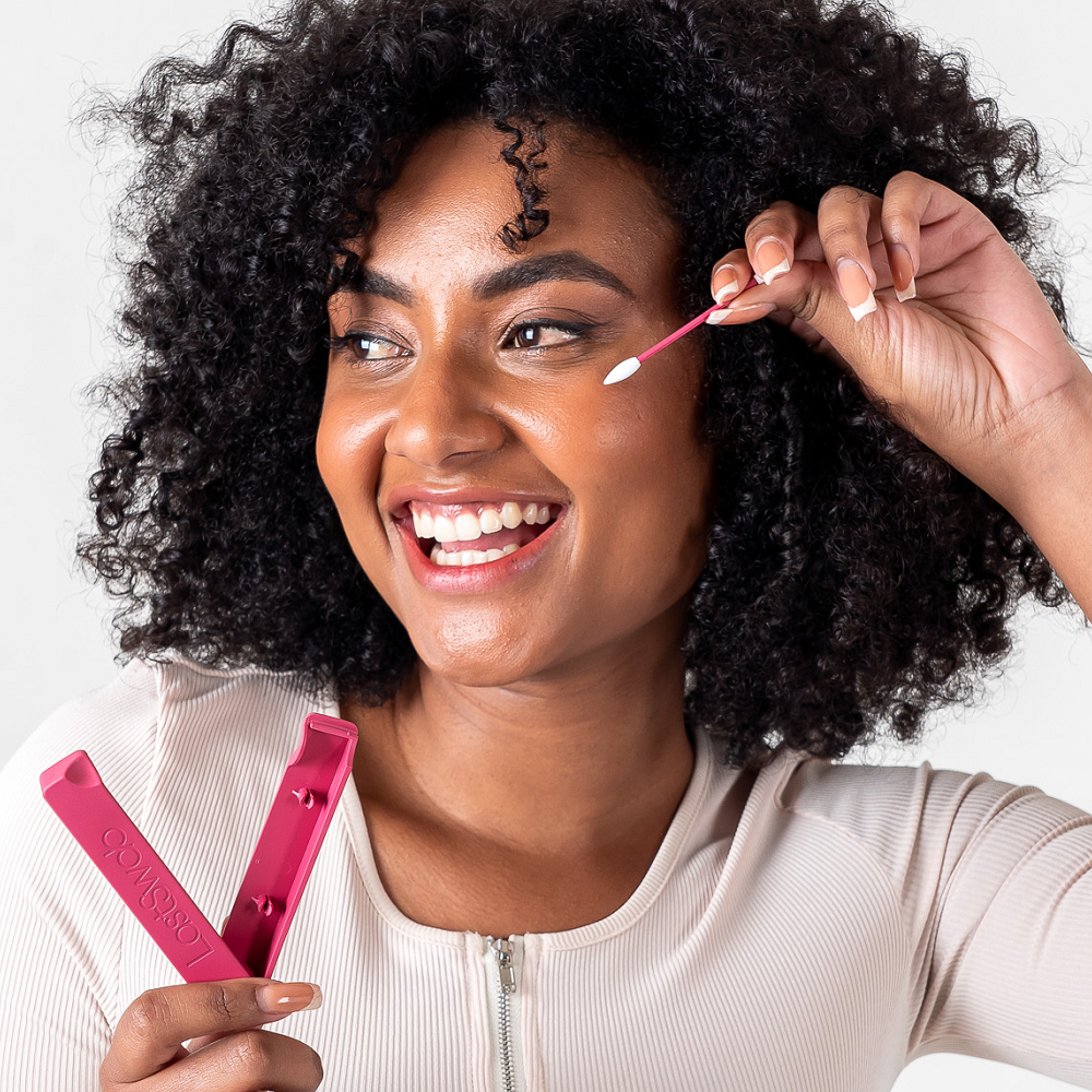 Nowy i ulepszony LastSwab Beauty v2: Końcówki wacika mają teraz otwory jak w piłce golfowej, by lepiej poprawiać makijaż.
