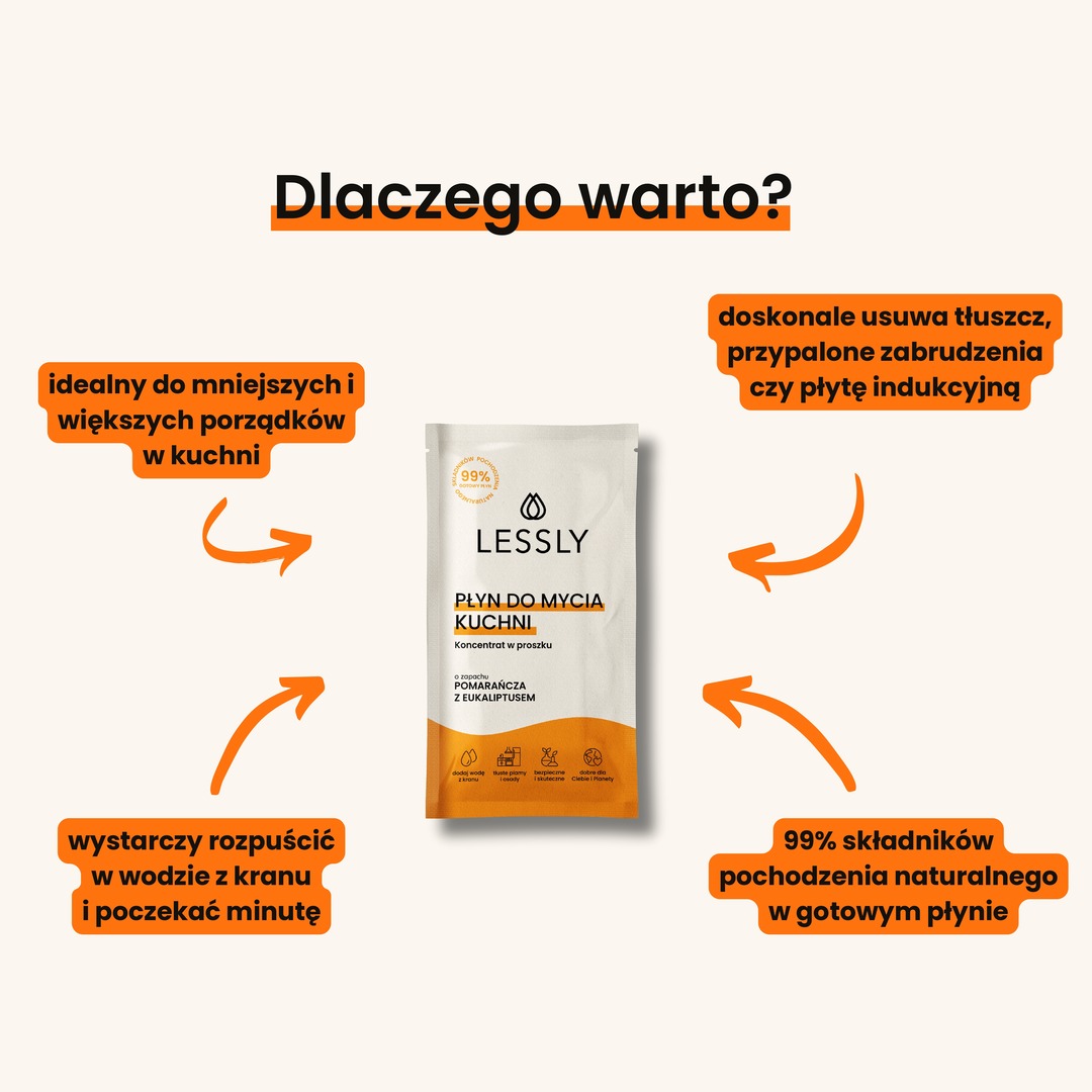 Nie czekaj – wybierz Lessly Płyn do Kuchni – Starter, 500 ml i sprzątaj skutecznie, bez kompromisów dla planety! Zamów już dziś i dołącz do ekologicznej rewolucji w sprzątaniu!