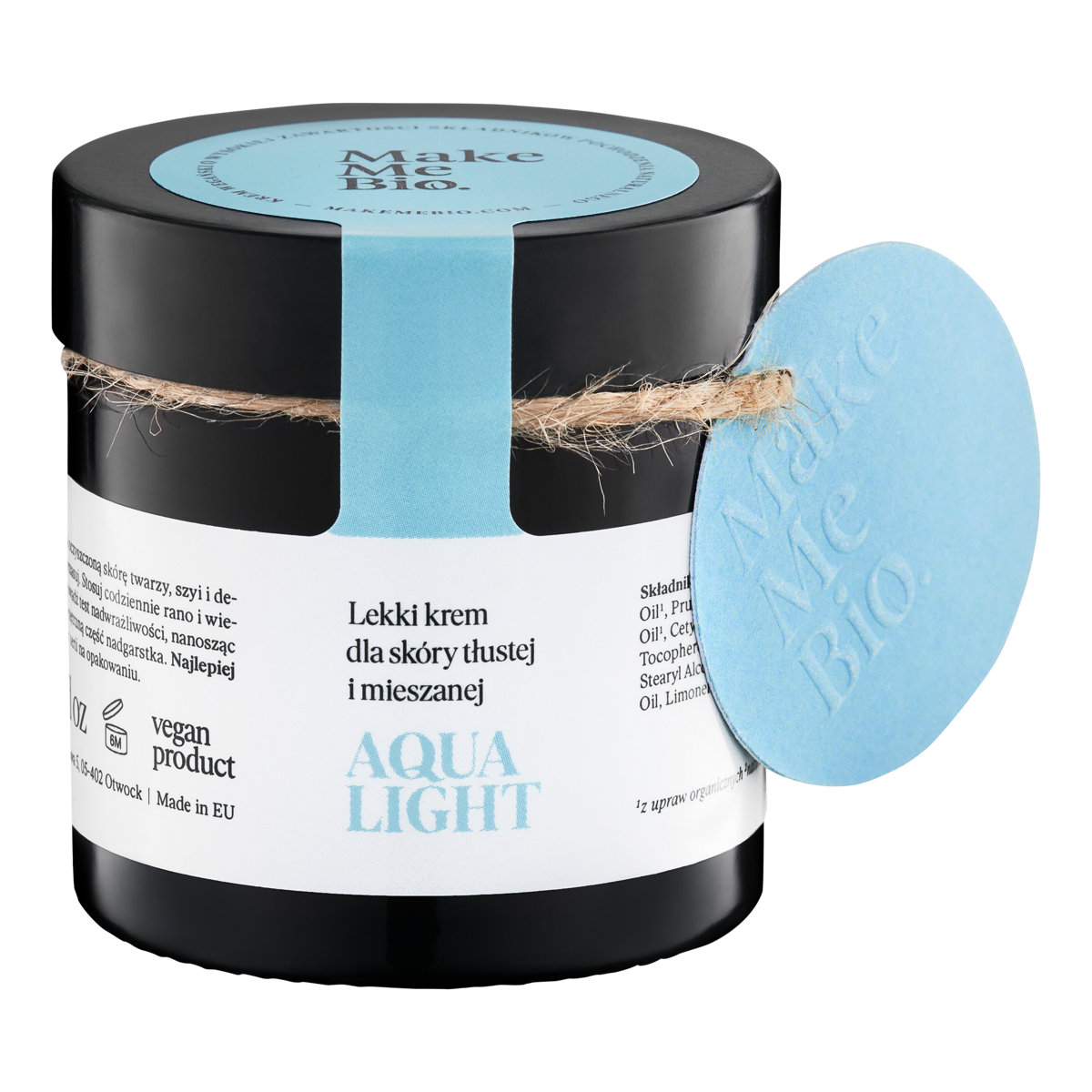 Make Me Bio krem Aqua Light dla Skóry Tłustej i Mieszanej to delikatna, to lekkość porównywalna z delikatną bryzą owiewającą skórę wymagającą odpowiedniej pielęgnacji. W dbaniu o cerę tłustą, jak i mieszaną najważniejsza jest odpowiednie nawilżanie, które dodatkowo jej nie obciąża. Stąd ultralekki Aqua Light jest jednym z najlepszych wyborów.