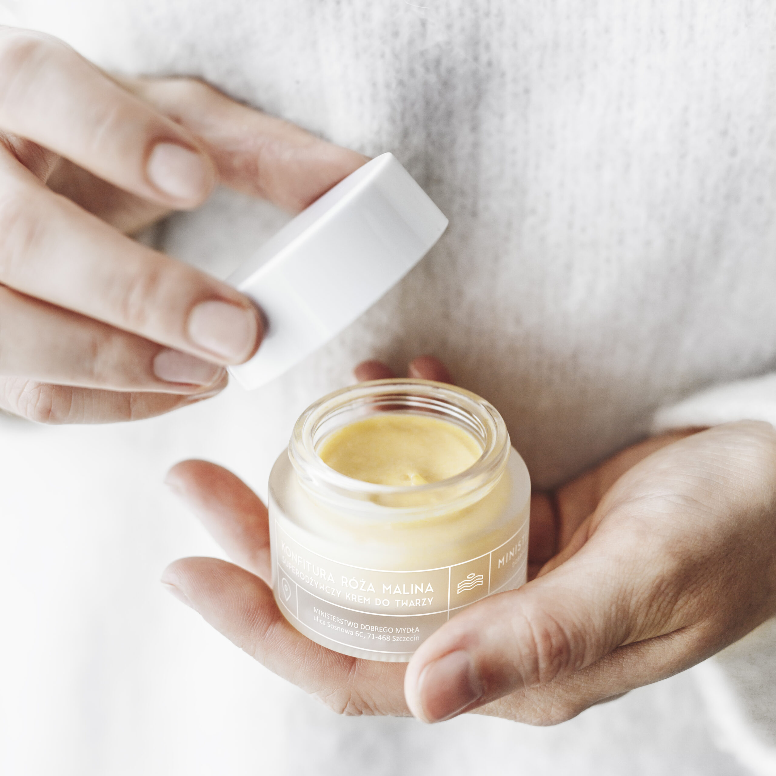 Ministerstwo Dobrego Mydła krem do twarzy Konfitura Róża Malina to efekt kolaboracji 11 kobiet z Ministerstwa Dobrego Mydła oraz laboratorium IOSSI. Ma bogaty skład, w którym znajdziecie mieszankę oleju z róż i malin, wzbogaconą komórkami macierzystymi z czerwonych jabłek, konkretną dawkę witamin i koenzym Q10.