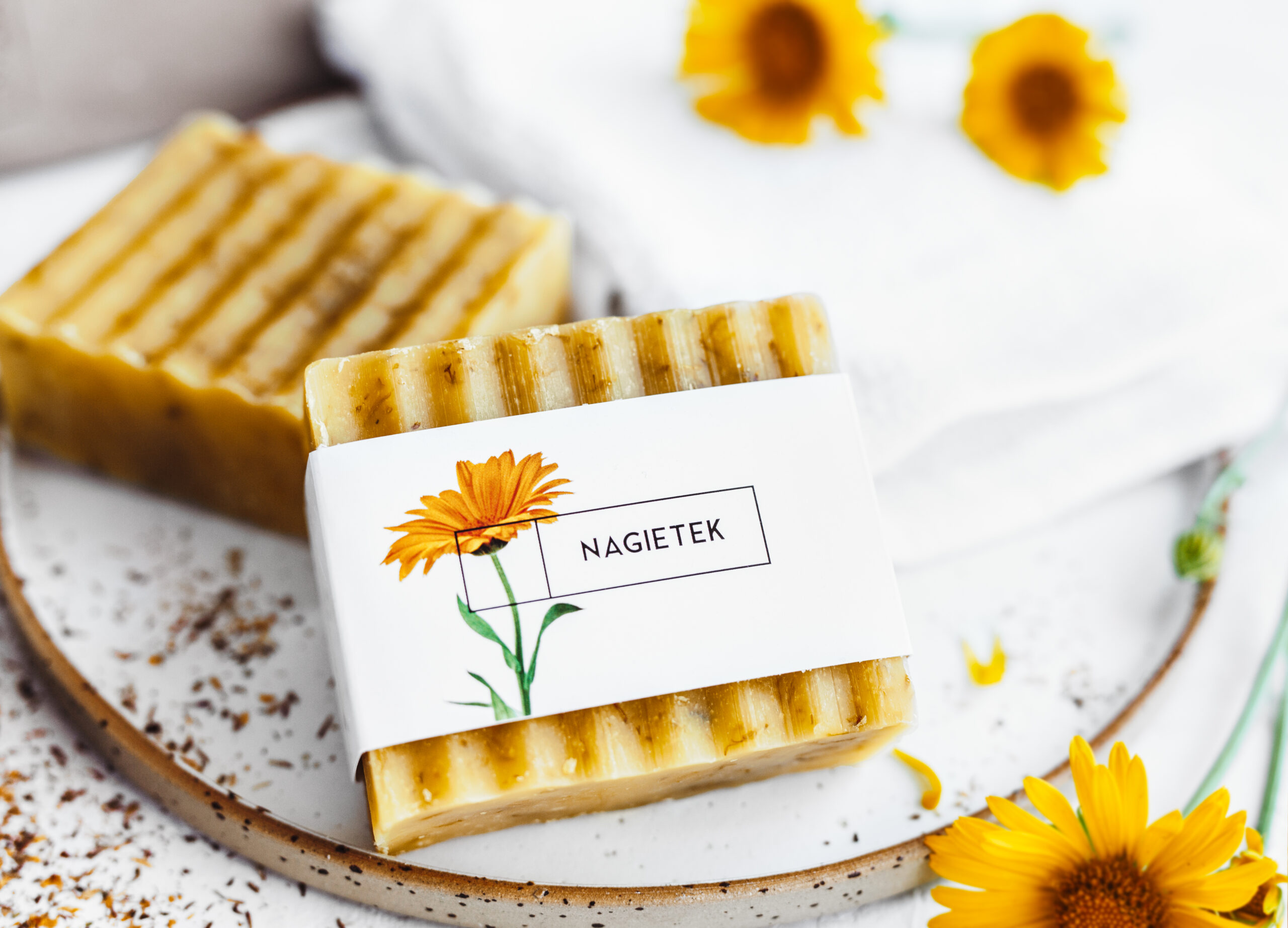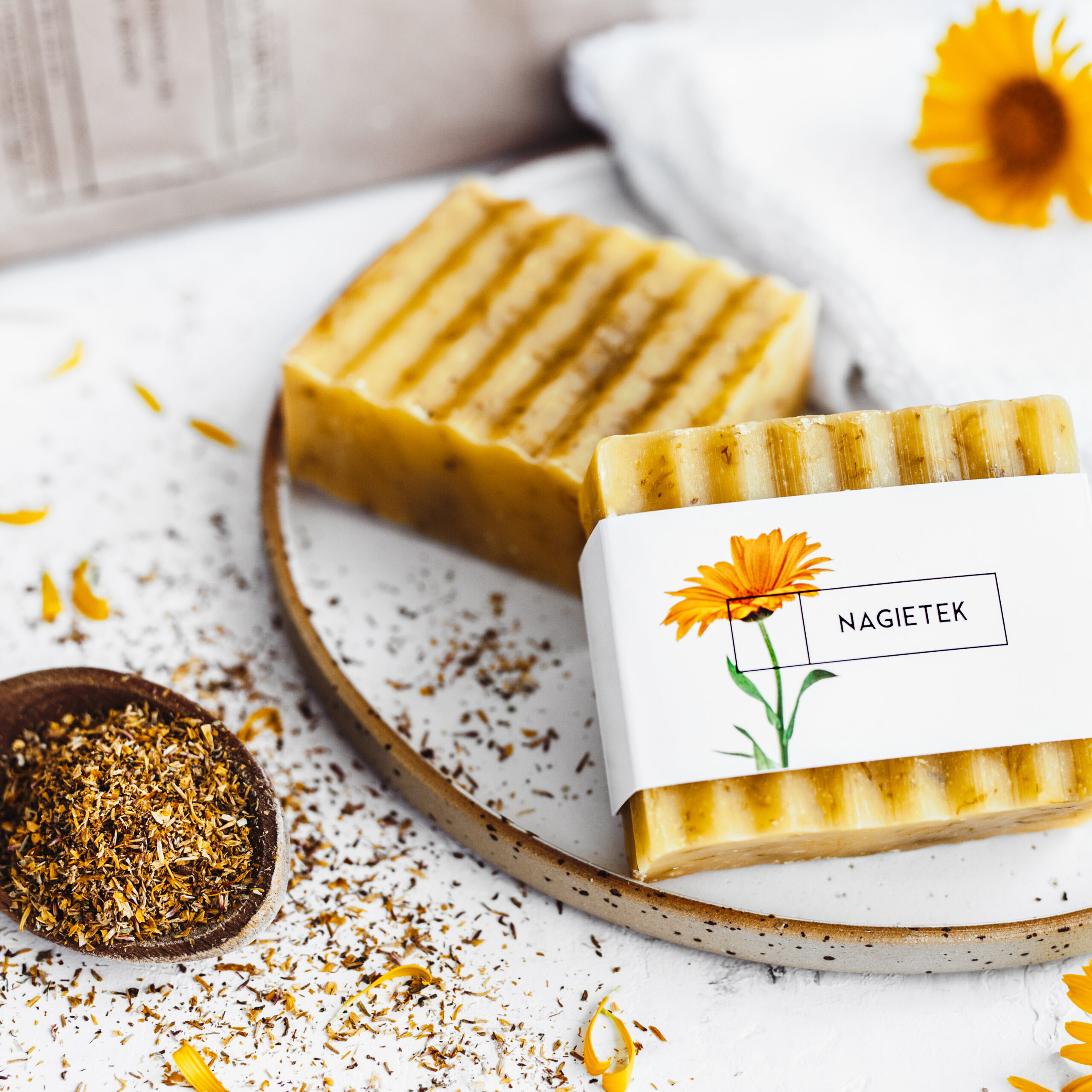 Ministerstwo Dobrego Mydła naturalne mydło w kostce Nagietek nadaje się do skóry wrażliwej, przesuszonej i zniszczonej. Bogate w macerat z nagietka i masło Shea odżywia i łagodnie oczyszcza, pozostawiając skórę nawilżoną i pełną zdrowego blasku.