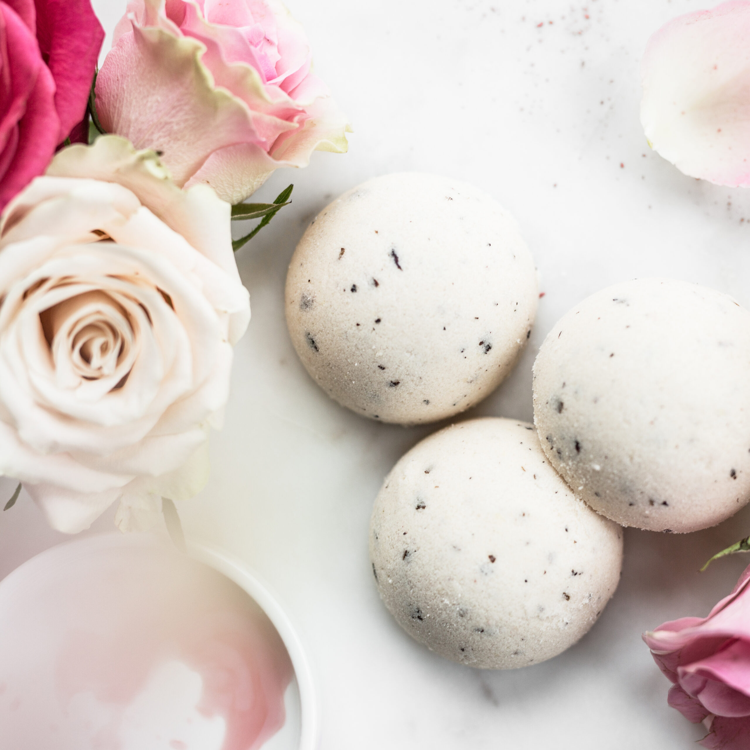 Dodatkowo Różana Półkula Kąpielowa zawiera drobno posiekane płatki róży damasceńskiej. Całość pod wpływem kontaktu z ciepłą wodą, delikatnie musuje i uwalnia najlepsze, pielęgnacyjne oleje i mleko.