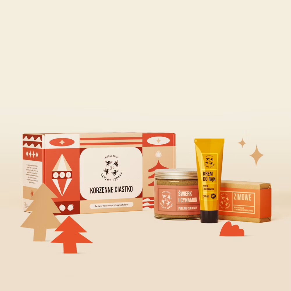Oto idealny pomysł na prezent – wyjątkowe połączenie naturalnej pielęgnacji i ciepłych, korzennych aromatów. Zestaw Korzenne Ciastko to trzy kosmetyki o zapachach, które przywołują świąteczny nastrój: cytrusy, przyprawy i leśna żywica. Całość zapakowana w eleganckie pudełko, gotowe do wręczenia.
