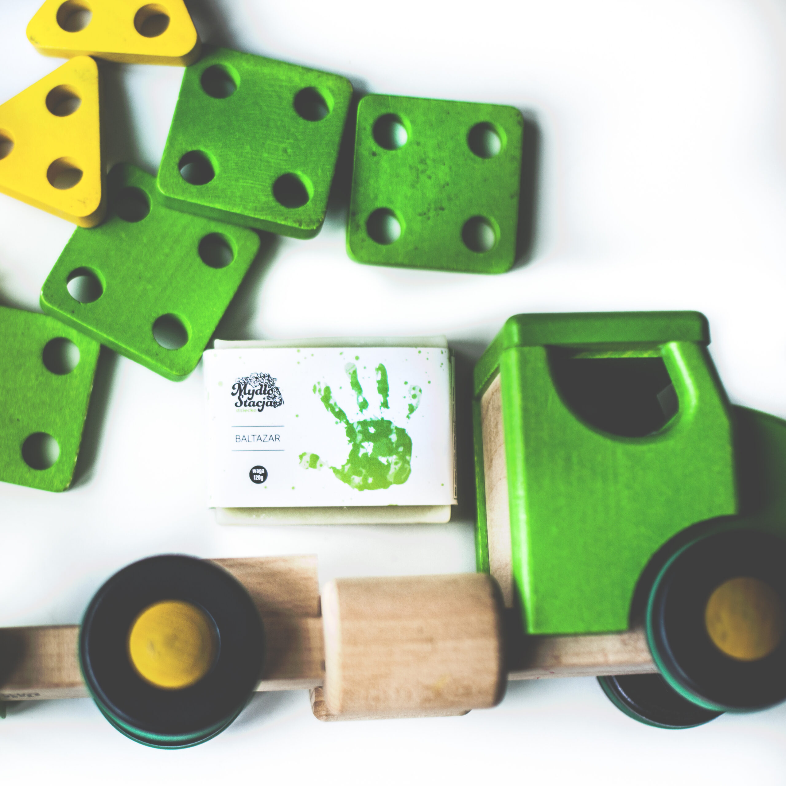 Zielony kolor to konsekwencja chlorofilu zawartego w nasionach – działa przeciwzapalnie i łagodząco na skórę. Baltazar w swoim składzie ma także delikatny olej migdałowy, masło shea oraz olej kokosowy. Owe oleje oraz duże przetłuszczenie mydła (8%) doskonale zabezpieczają skórę dziecka przed nadmierną utratą wody i działaniem bakterii. Jesteśmy przekonani, że nasze mydło zmniejsza ryzyko podrażnień delikatnej skóry dziecięcej. Można je stosować już od pierwszych dni.