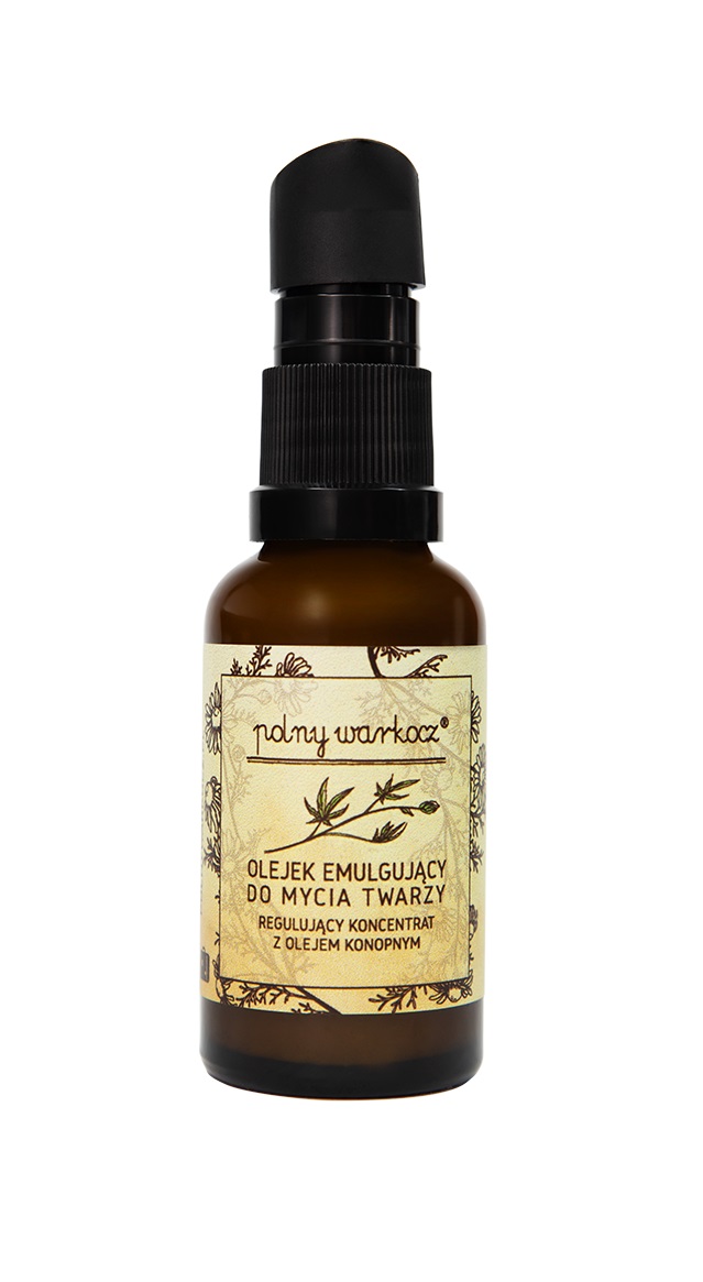Polny Warkocz, Olejek emulgujący do mycia twarzy, regulujący koncentrat z olejem konopnym, wersja podróżna, 30 ml