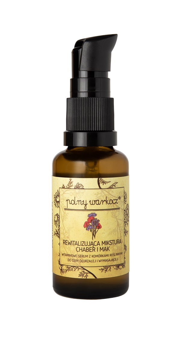 Polny Warkocz, Rewitalizująca mikstura chaber i mak – witaminowe serum z komórkami roślinnymi do cery dojrzałej i wymagającej, 30 ml