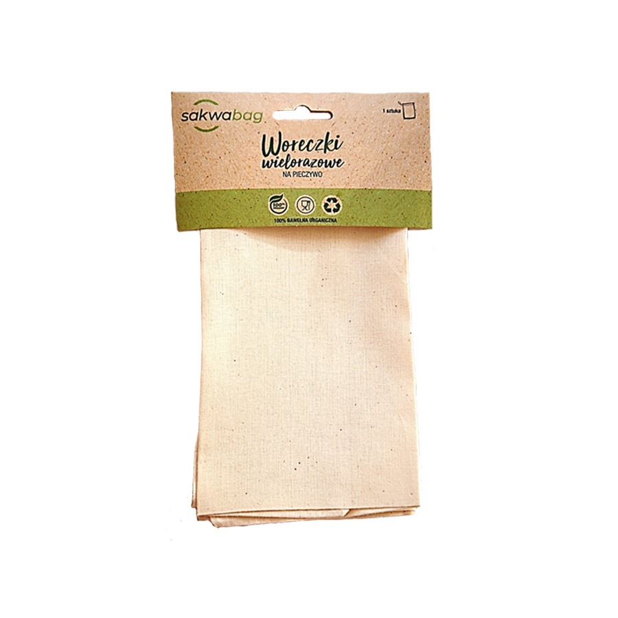 Wielorazowy woreczek na pieczywo, wykonany w 100% z bawełny organicznej z certyfikacją Global Organic Textile Standard. Woreczek o wymiarach 30x40cm. Przedmiot wielokrotnego użytku, biodegradowalny.  Produkt dopuszczony do kontaktu z żywnością przez Państwową Inspekcję Sanitarną.