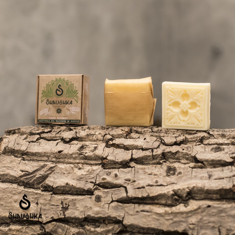 Shaushka odżywka do włosów w kostce to niezwykle wydajny produkt. Nadaje się do każdego rodzaju włosów, wystarczy niewielka jej ilość by poczuć różnicę. Bardzo wygodna w użyciu oraz transporcie. Osobom z włosami przesuszonymi lub kręconymi z tendencją do puszenia zalecamy metodę OMO, czyli nałożenie odżywki, mycie włosów i ponownie odżywki.  Namocz włosy wodą, po czym wetrzyj w nie odżywkę, następnie umyj włosy szamponem. Taki sposób działania zabezpiecza włosy przed niekorzystnym działaniem piany, co jest szczególnie istotne w przypadku włosów wysokoporowatych. Spłucz włosy i ponownie nałóż odżywkę, masując skórę głowy. Jeśli masz czas, możesz ją zostawić nawet na 30 minut. Gdy Ci się spieszy, odżywkę pozostaw przynajmniej na 2 minuty. Jeśli masz kruche i łamliwe włosy, nie wycieraj ich intensywnie ręcznikiem.