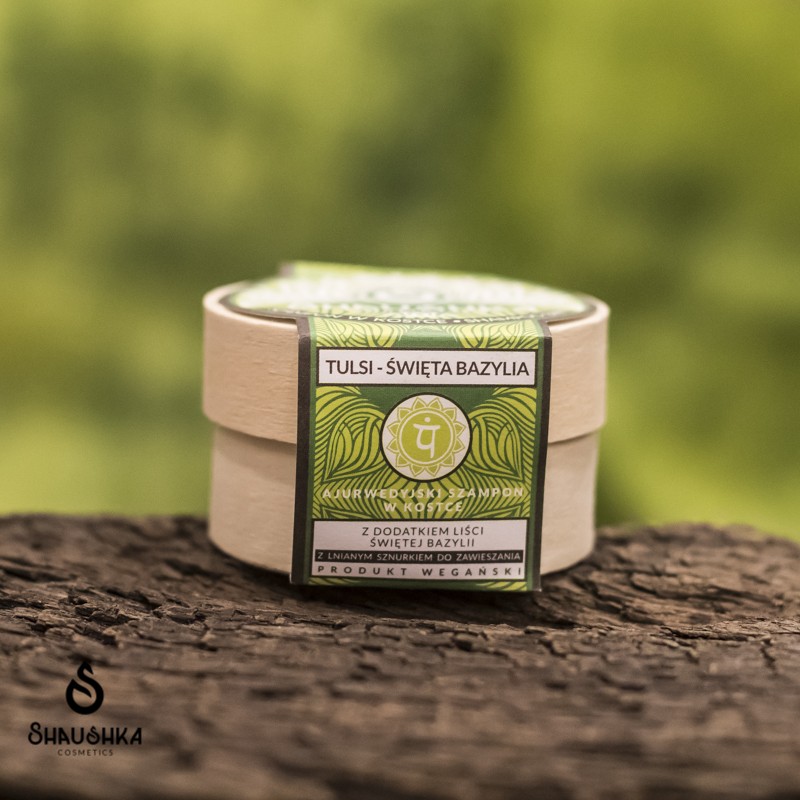 Shaushka, szampon w kostce Ajurwedyjski – Tulsi Święta bazylia, 80 g