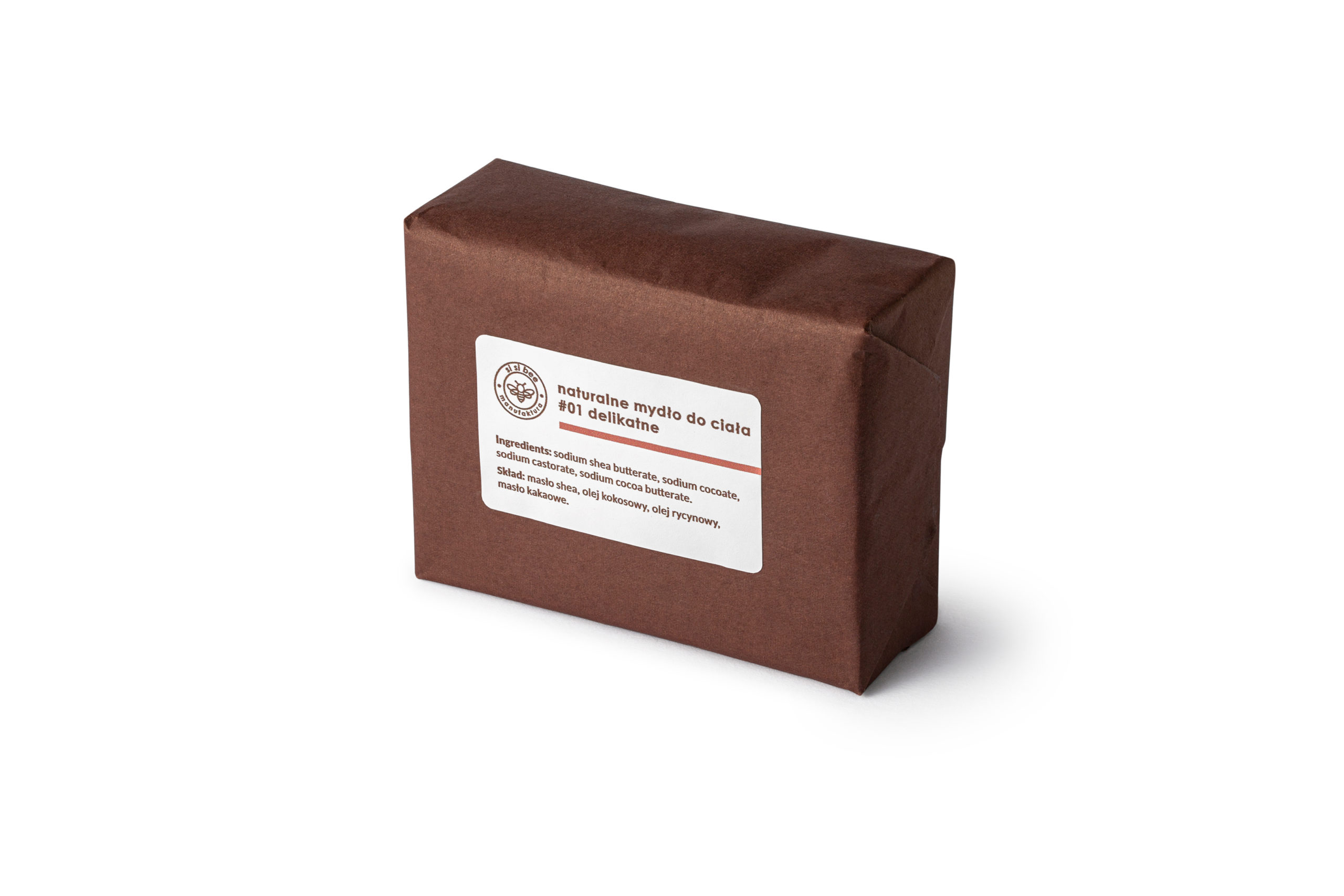 Delikatne i naturalne mydło do ciała No 01 od si si bee. Formuła mydła jest bogata w roślinne kwasy tłuszczowe, ponadto nienasycony kwas oleinowy Omega – 9, który pozyskiwany jest z masła kakaowego. Mydło jest bezzapachowe, nie znajdziesz w nim także żadnych stałych frakcji roślinnych (płatki kwiatów, etc.).